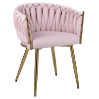 FOTEL KRZESŁO WELUROWE TAPICEROWANE TINA PUDROWY RÓŻ NOGI ZŁOTE
