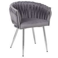 FOTEL KRZESŁO WELUROWE TAPICEROWANE RISO SZARY NOGI CHROM