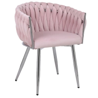 FOTEL KRZESŁO WELUROWE TAPICEROWANE RISO PUDROWY RÓŻ NOGI CHROM