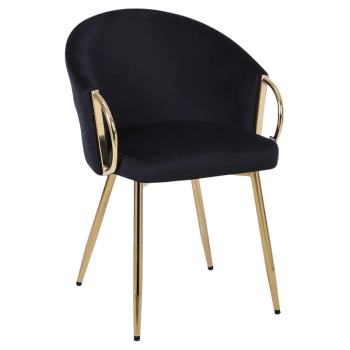 FOTEL KRZESŁO WELUROWE TAPICEROWANY METIS CZARNY NOGI ZŁOTE