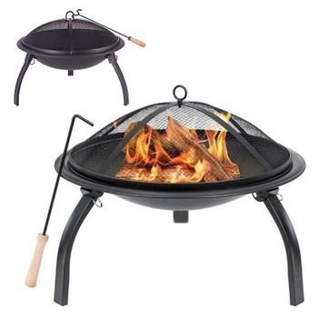 GRILL OGRODOWY WĘGLOWY Z POKRYWĄ I PÓŁKAMI VL09-A1 CZARNY