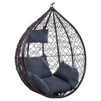 FOTEL OGRODOWY WISZĄCY KOKON DUŻY KOSZ KORFU BRĄZOWY Z PODSTAWĄ PODUSZKA SZARA