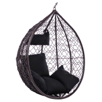 FOTEL OGRODOWY WISZĄCY KOKON DUŻY KOSZ ITAKA CZARNY Z PODSTAWĄ PODUSZKA BRĄZOWA