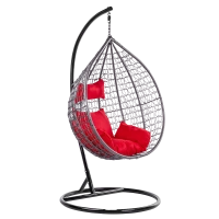 FOTEL OGRODOWY WISZĄCY KOKON DUŻY KOSZ ITAKA SZARY Z PODSTAWĄ PODUSZKA CZERWONA