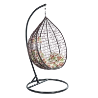 FOTEL OGRODOWY WISZĄCY KOKON DUŻY KOSZ ITAKA BRĄZOWY Z PODSTAWĄ PODUSZKA BRĄZOWE KWIATY