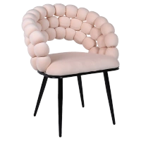 FOTEL KRZESŁO PLECIONE WELUROWE TAPICEROWANE GLAMOUR BORNEO PUDROWY RÓŻ NOGI CZARNE