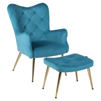 FOTEL KRZESŁO PLECIONE WELUROWE TAPICEROWANE GLAMOUR BORNEO TURKUSOWY NOGI ZŁOTE