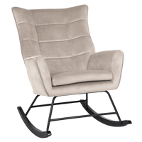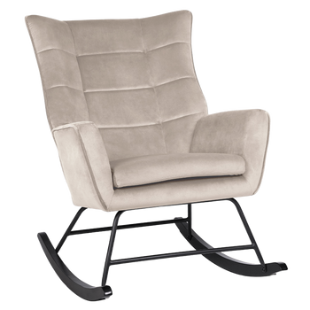 FOTEL KRZESŁO BUJANE USZAK WELUROWE TAPICEROWANE ARUBA BEŻOWY NOGI CZARNE