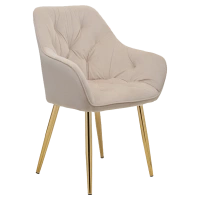 FOTEL KRZESŁO WELUROWE TAPICEROWANY CAPRI ECRU WELUR NOGI ZŁOTE