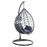 FOTEL OGRODOWY WISZĄCY KOKON DUŻY KOSZ KORFU CZARNY Z PODSTAWĄ PODUSZKA OKRĄGŁA SZARA