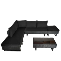 ZESTAW MEBLI OGRODOWYCH TOBA CZARNY 5 OSOBOWY STOLIK NAROŻNIK