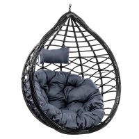 FOTEL OGRODOWY WISZĄCY KOKON DUŻY KOSZ KORFU CZARNY BEZ PODSTAWY PODUSZKA SZARA