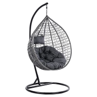 FOTEL OGRODOWY WISZĄCY KOKON DUŻY KOSZ ITAKA SZARY Z PODSTAWĄ PODUSZKA OKRĄGŁA CZARNA