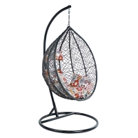 FOTEL OGRODOWY WISZĄCY KOKON DUŻY KOSZ KORFU CZARNY Z PODSTAWĄ PODUSZKA BRĄZOWE KWIATY