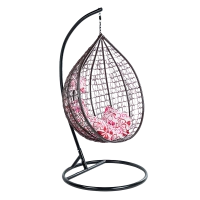 FOTEL OGRODOWY WISZĄCY KOKON DUŻY KOSZ ITAKA BRĄZOWY Z PODSTAWĄ PODUSZKA RÓŻOWE KWIATY