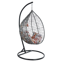 FOTEL OGRODOWY WISZĄCY KOKON DUŻY KOSZ ITAKA SZARY Z PODSTAWĄ PODUSZKA BRĄZOWE KWIATY