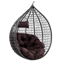 FOTEL OGRODOWY WISZĄCY KOKON DUŻY KOSZ ITAKA CZARNY Z PODSTAWĄ PODUSZKA OKRĄGŁA BRĄZOWA