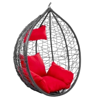 FOTEL OGRODOWY WISZĄCY KOKON DUŻY KOSZ KORFU SZARY BEZ PODSTAWY PODUSZKA CZERWONA