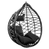 FOTEL OGRODOWY WISZĄCY KOKON DUŻY KOSZ KORFU CZARNY Z PODSTAWĄ PODUSZKA CZARNA