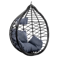 FOTEL OGRODOWY WISZĄCY KOKON DUŻY KOSZ KORFU CZARNY Z PODSTAWĄ PODUSZKA OKRĄGŁA SZARA