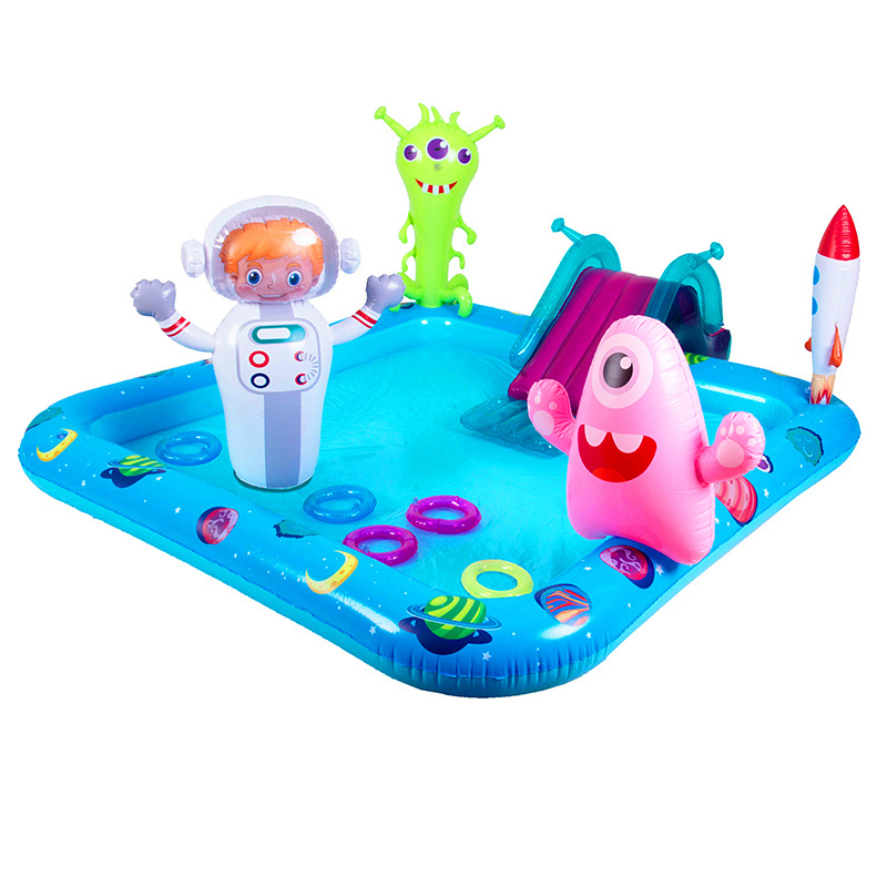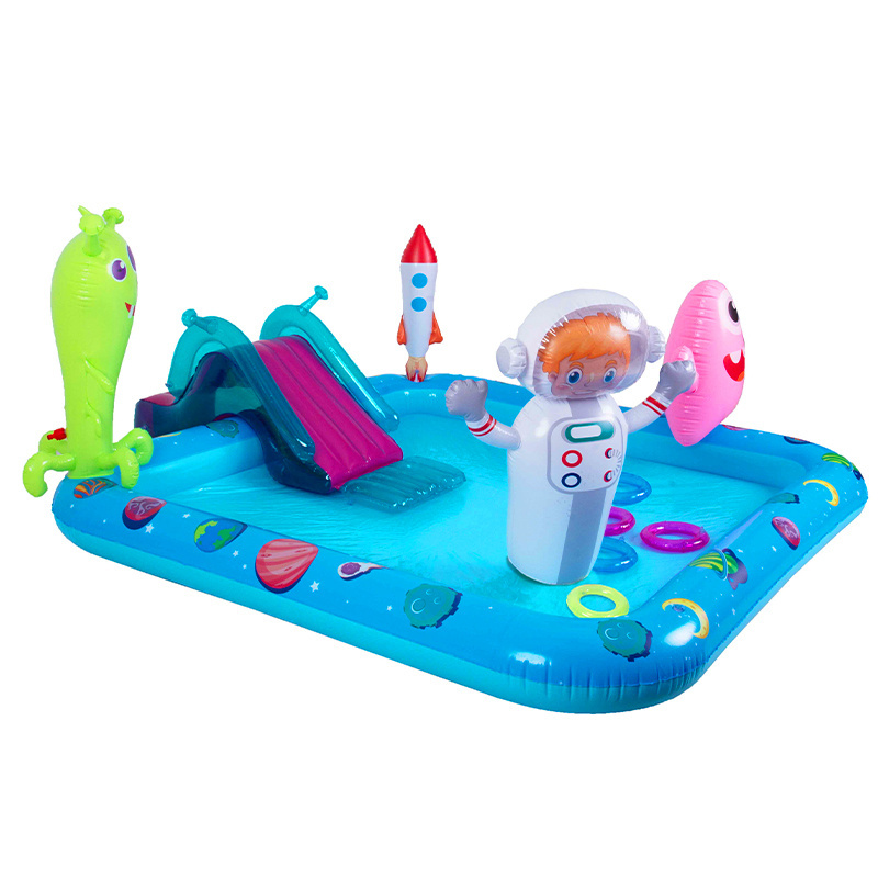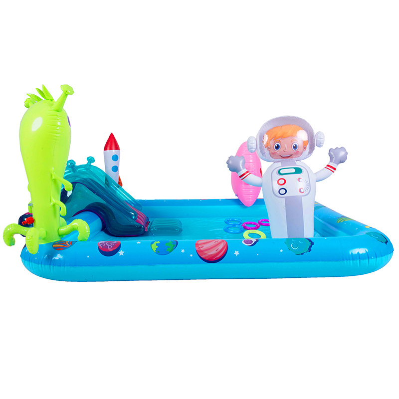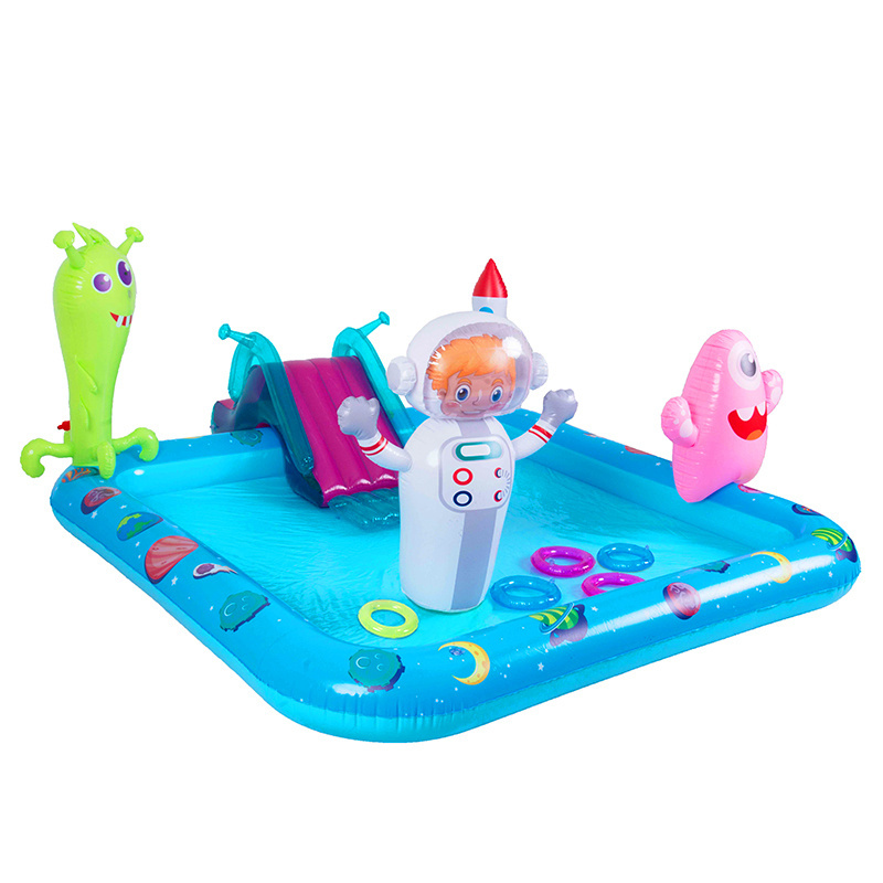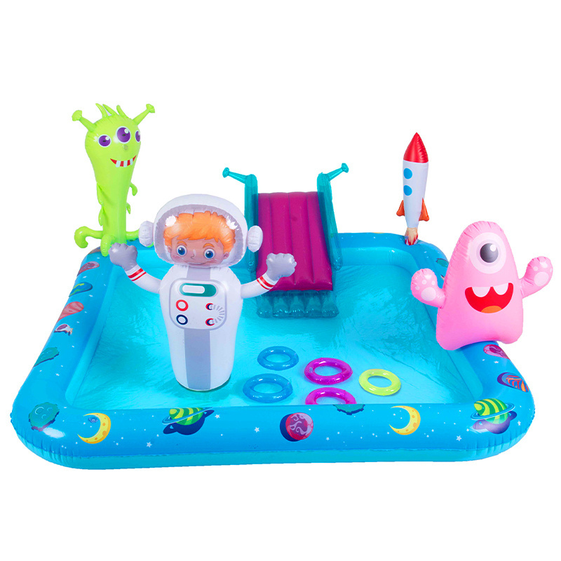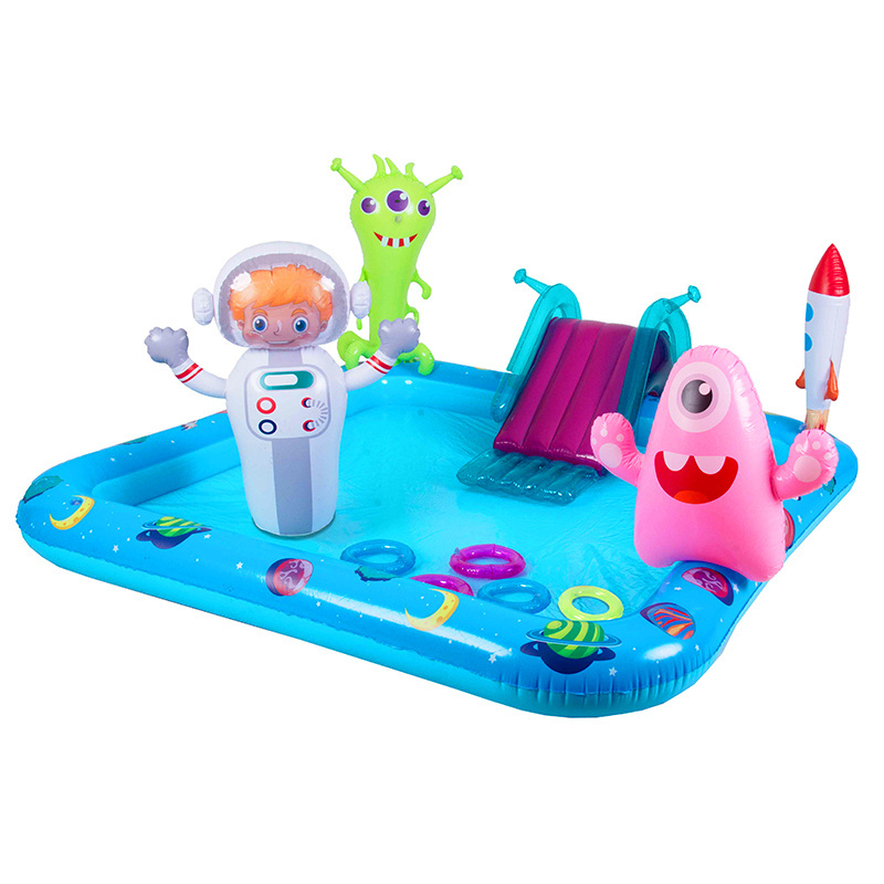 Połączenie płytkiego brodzika, zjeżdżalni i zestawu nadmuchiwanych dekoracji sprawia, że produkt pełni funkcję kompaktowego centrum rozrywki. Dzięki temu dzieci mają dostęp do różnorodnych aktywności w jednym miejscu, bez potrzeby korzystania z dodatkowych zabawek.