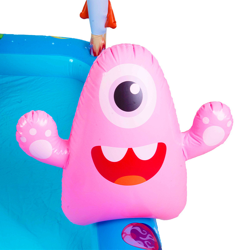 grafiki przedstawiające kosmonauty, kosmity, potwora i rakiety tworzą bajkowe otoczenie, które pobudza wyobraźnię i zachęca do zabawy tematycznej. Dodatkowo atrakcyjna kolorystyka wyróżnia produkt spośród innych basenów ogrodowych.