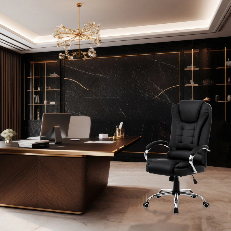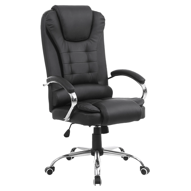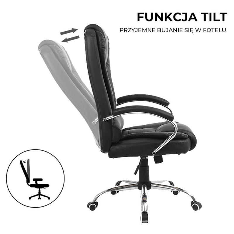 FOTEL BIUROWY OBROTOWY AMBER CZARNA SKÓRA PU PODSTAWA CHROM
