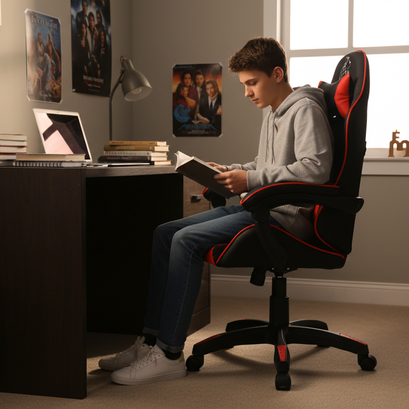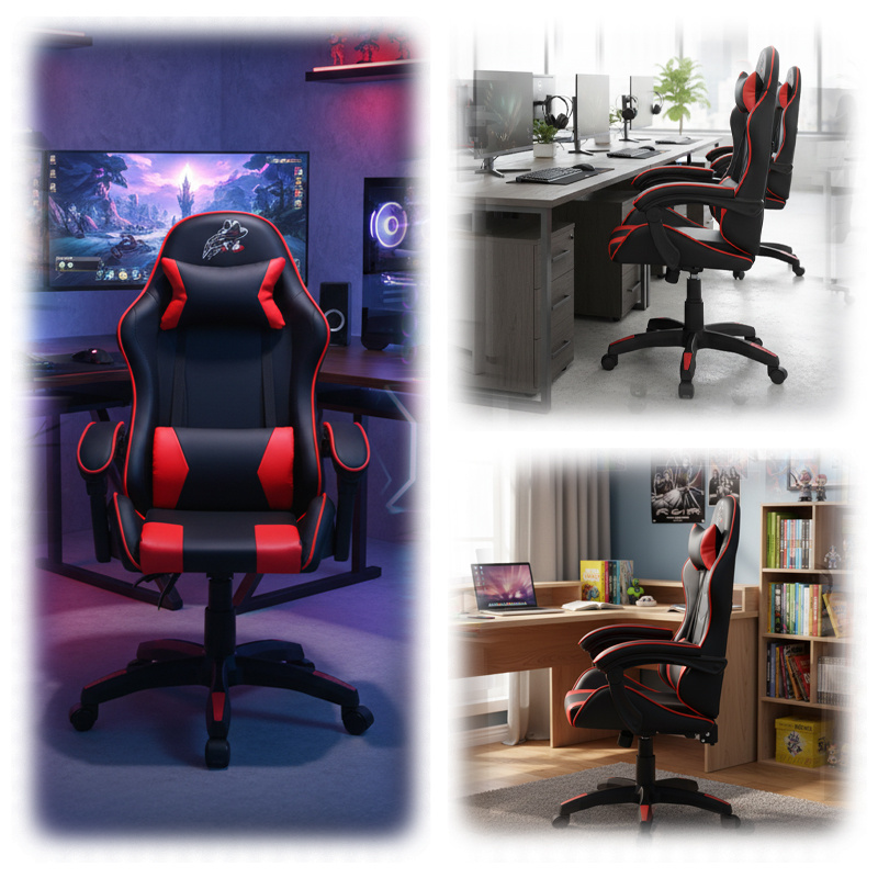 Fotel utrzymany jest w atrakcyjnej czerwono-czarnej kolorystyce, co nadaje mu sportowego i agresywnego wyglądu, stając się jednocześnie elementem dekoracyjnym pomieszczenia.