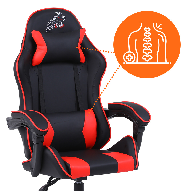 FOTEL GAMINGOWY BIUROWY OBROTOWY ZING-B CZARNO/CZERWONY SKÓRA PU