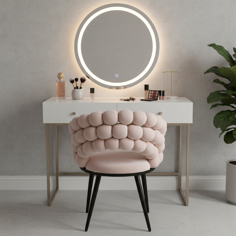 Fotel ATRIA – nowoczesna elegancja i komfort w designerskiej formie. Dodaj swojemu wnętrzu elegancji i charakteru dzięki wyjątkowemu krzesłu ATRIA, tapicerowanemu miękkim welurem i wyróżniającemu się oryginalnym designem oraz starannie dopracowaną formą. Oparcie wykonane z miękkich, kulistych modułów z pianki natywnej nie tylko przyciąga wzrok, ale także gwarantuje niezwykły komfort podczas siedzenia. Aksamitna tkanina welurowa o gramaturze 295 g/m² zachwyca subtelnym połyskiem i zmiennością odcienia pod wpływem dotyku, tworząc przytulną i luksusową atmosferę. Stabilne, metalowe nogi dodają konstrukcji nowoczesnego charakteru i zapewniają trwałość na lata. To krzesło to doskonały wybór zarówno do wnętrz mieszkalnych – salonu, sypialni, toaletki czy garderoby – jak i przestrzeni komercyjnych takich jak showroomy, salony piękności czy poczekalnie. To harmonijne połączenie stylu, wygody i trwałości.