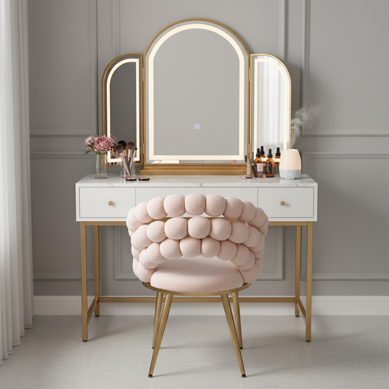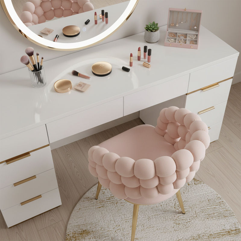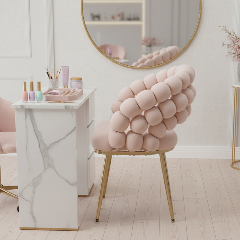Fotel ATRIA – nowoczesna elegancja i komfort w designerskiej formie. Dodaj swojemu wnętrzu elegancji i charakteru dzięki wyjątkowemu krzesłu ATRIA, tapicerowanemu miękkim welurem i wyróżniającemu się oryginalnym designem oraz starannie dopracowaną formą. Oparcie wykonane z miękkich, kulistych modułów z pianki natywnej nie tylko przyciąga wzrok, ale także gwarantuje niezwykły komfort podczas siedzenia. Aksamitna tkanina welurowa o gramaturze 295 g/m² zachwyca subtelnym połyskiem i zmiennością odcienia pod wpływem dotyku, tworząc przytulną i luksusową atmosferę. Stabilne, metalowe nogi dodają konstrukcji nowoczesnego charakteru i zapewniają trwałość na lata. To krzesło to doskonały wybór zarówno do wnętrz mieszkalnych – salonu, sypialni, toaletki czy garderoby – jak i przestrzeni komercyjnych takich jak showroomy, salony piękności czy poczekalnie. To harmonijne połączenie stylu, wygody i trwałości.