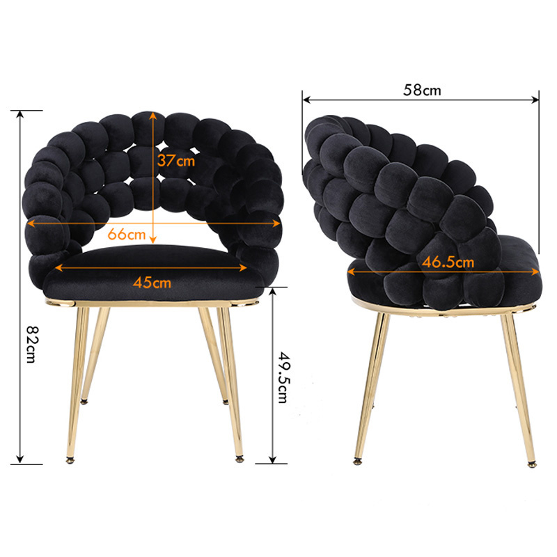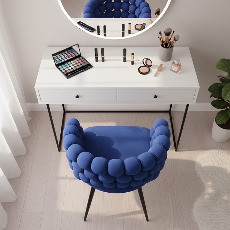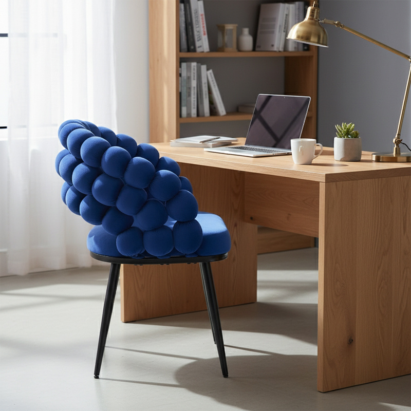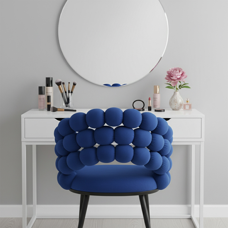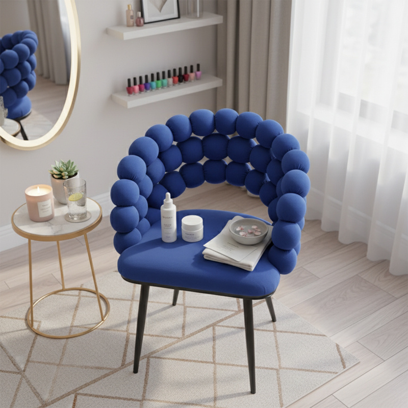 Fotel ATRIA – nowoczesna elegancja i komfort w designerskiej formie. Dodaj swojemu wnętrzu elegancji i charakteru dzięki wyjątkowemu krzesłu ATRIA, tapicerowanemu miękkim welurem i wyróżniającemu się oryginalnym designem oraz starannie dopracowaną formą. Oparcie wykonane z miękkich, kulistych modułów z pianki natywnej nie tylko przyciąga wzrok, ale także gwarantuje niezwykły komfort podczas siedzenia. Aksamitna tkanina welurowa o gramaturze 295 g/m² zachwyca subtelnym połyskiem i zmiennością odcienia pod wpływem dotyku, tworząc przytulną i luksusową atmosferę. Stabilne, metalowe nogi dodają konstrukcji nowoczesnego charakteru i zapewniają trwałość na lata. To krzesło to doskonały wybór zarówno do wnętrz mieszkalnych – salonu, sypialni, toaletki czy garderoby – jak i przestrzeni komercyjnych takich jak showroomy, salony piękności czy poczekalnie. To harmonijne połączenie stylu, wygody i trwałości.