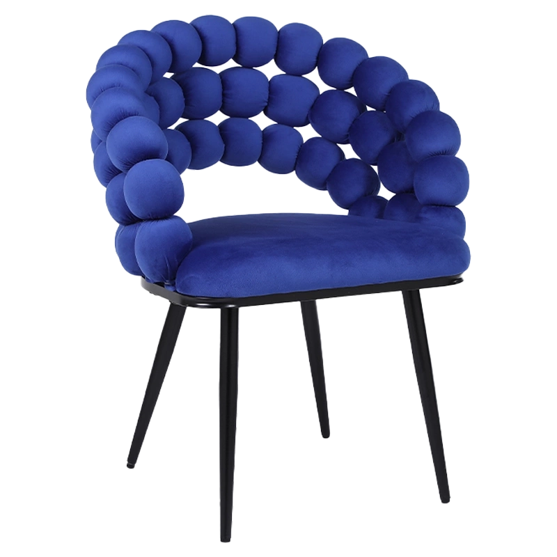 FOTEL KRZESŁO BUBBLE WELUROWE TAPICEROWANE ATRIA NIEBIESKI NOGI CZARNE