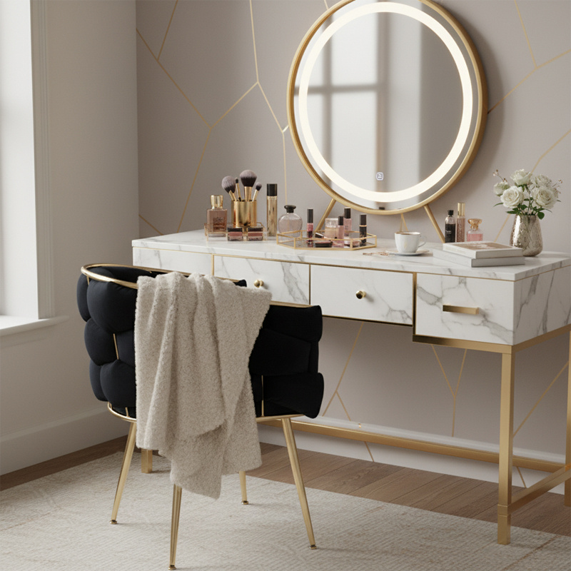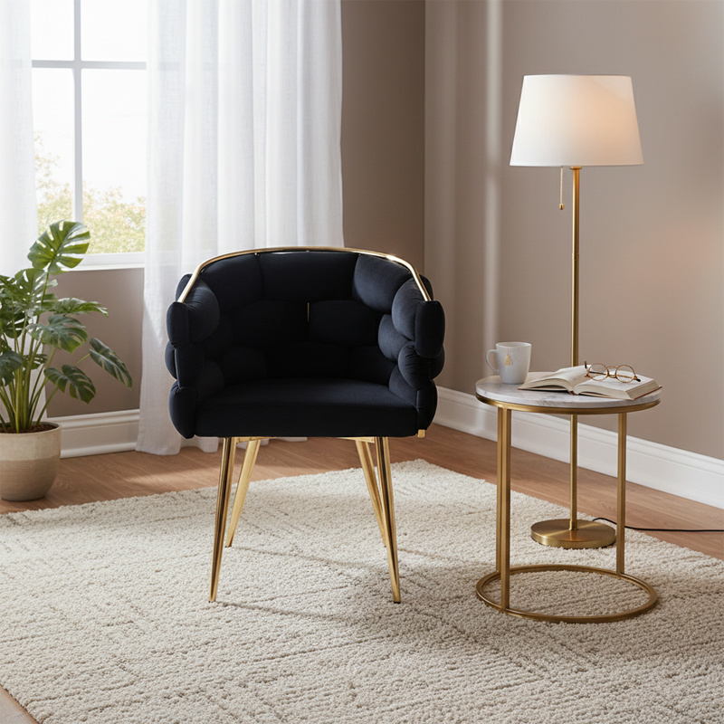 Dzięki swojej estetyce i wygodzie fotel świetnie sprawdzi się w domowych przestrzeniach – salonie, sypialni czy przy toaletce – jak również w eleganckich wnętrzach komercyjnych, takich jak showroomy, butiki, poczekalnie czy salony urody.