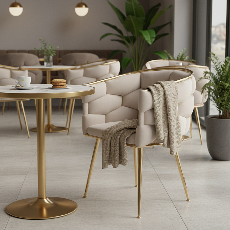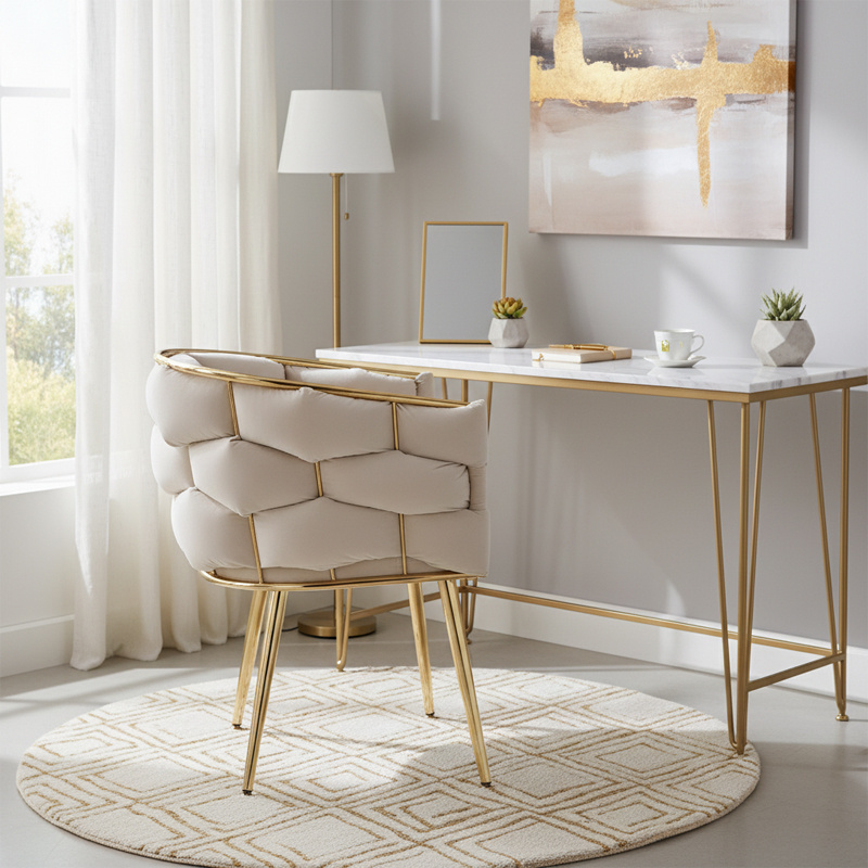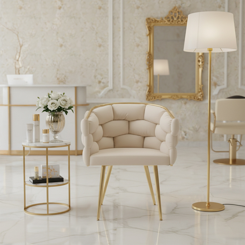 Dzięki swojej estetyce i wygodzie fotel świetnie sprawdzi się w domowych przestrzeniach – salonie, sypialni czy przy toaletce – jak również w eleganckich wnętrzach komercyjnych, takich jak showroomy, butiki, poczekalnie czy salony urody.