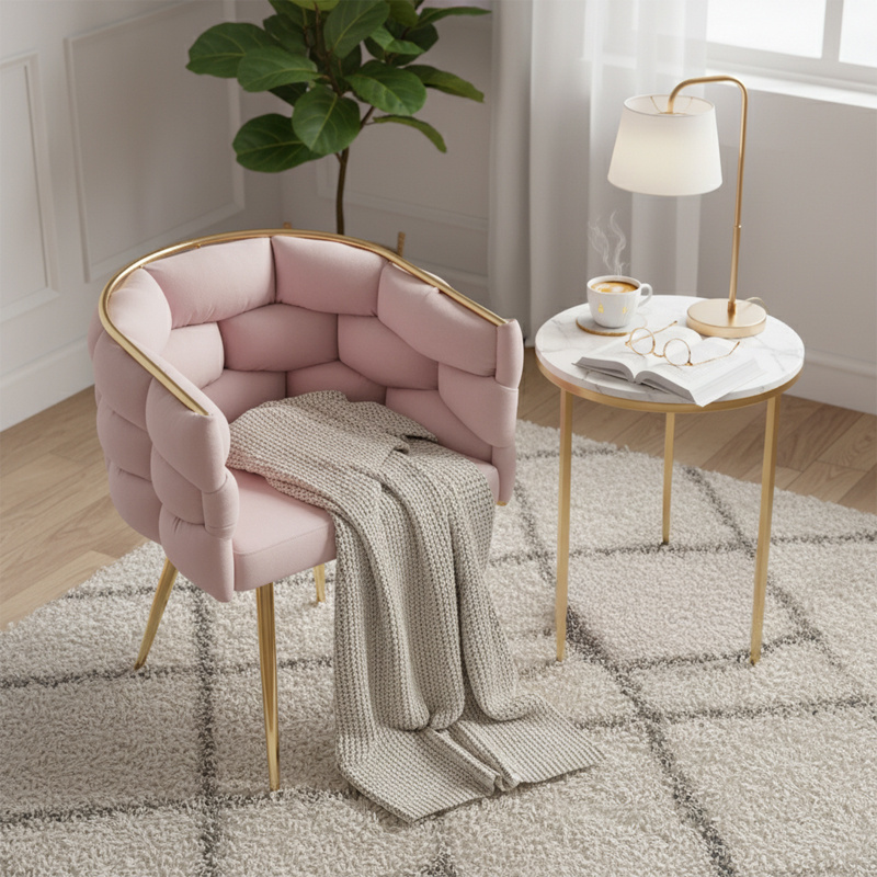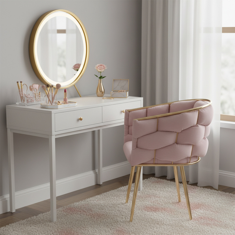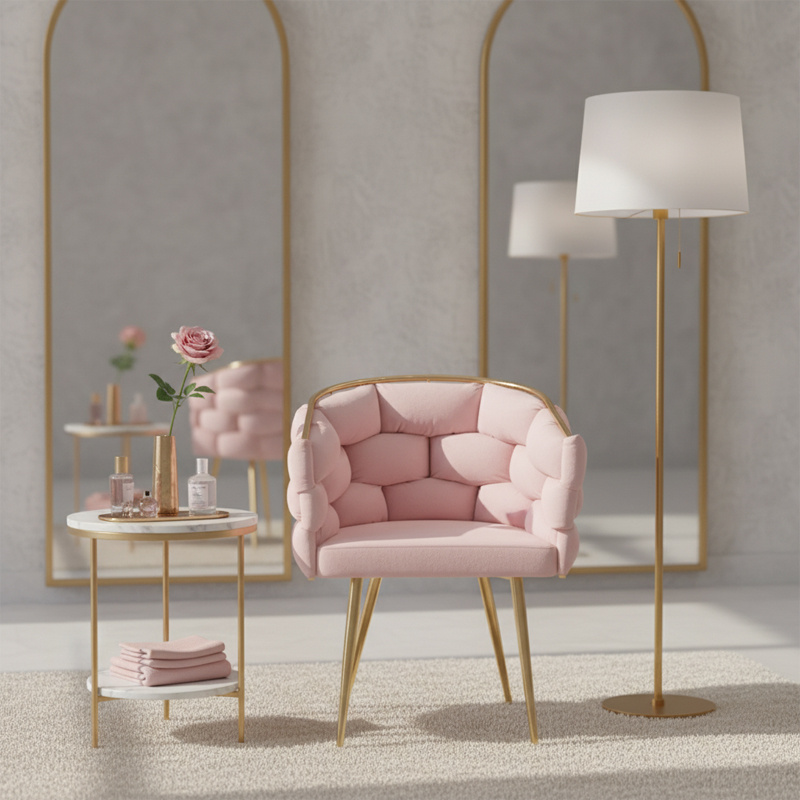 Dzięki swojej estetyce i wygodzie fotel świetnie sprawdzi się w domowych przestrzeniach – salonie, sypialni czy przy toaletce – jak również w eleganckich wnętrzach komercyjnych, takich jak showroomy, butiki, poczekalnie czy salony urody.