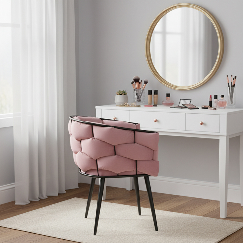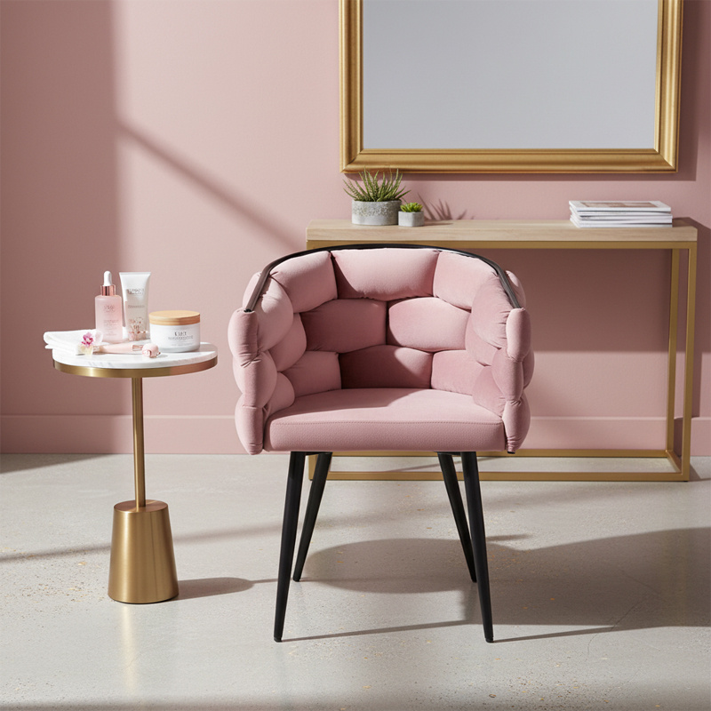 Dzięki swojej estetyce i wygodzie fotel świetnie sprawdzi się w domowych przestrzeniach – salonie, sypialni czy przy toaletce – jak również w eleganckich wnętrzach komercyjnych, takich jak showroomy, butiki, poczekalnie czy salony urody.