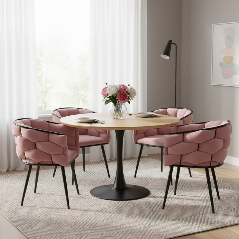 FOTEL KRZESŁO PLECIONE WELUROWE TAPICEROWANE GLAMOUR BORNEO BRUDNY RÓŻ NOGI CZARNE