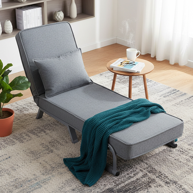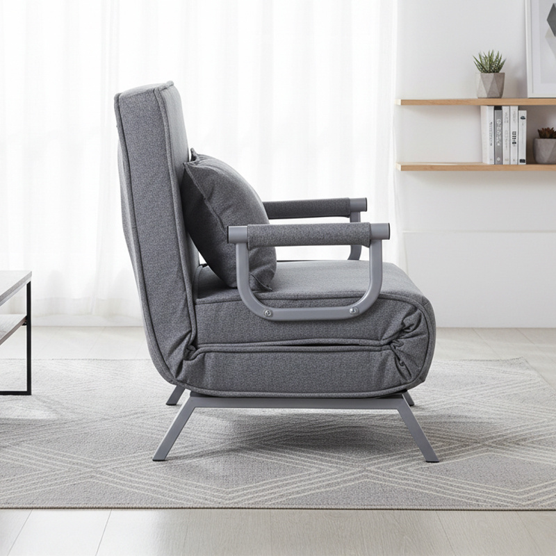 Możliwość przekształcenia fotela w wygodne łóżko sprawia, że doskonale sprawdzi się w małych przestrzeniach i jako dodatkowe miejsce do spania.