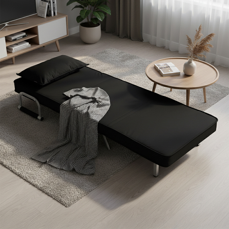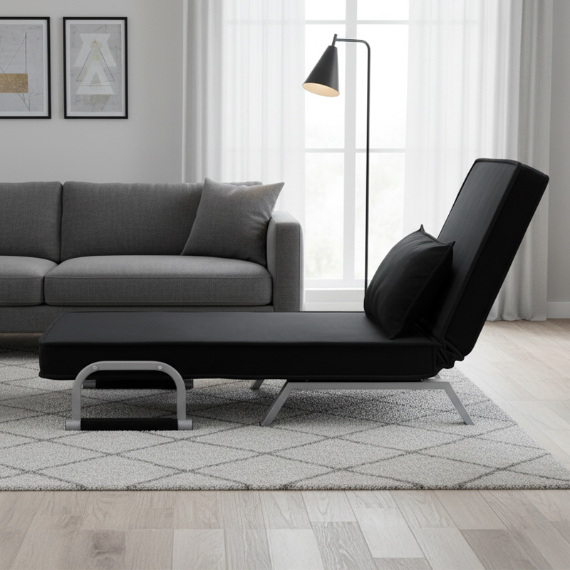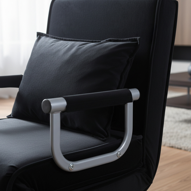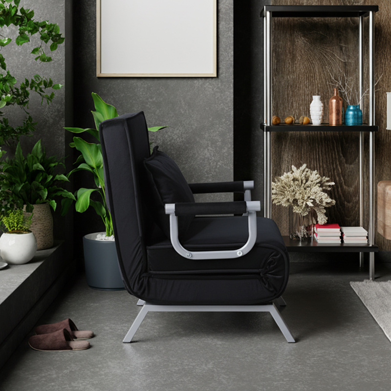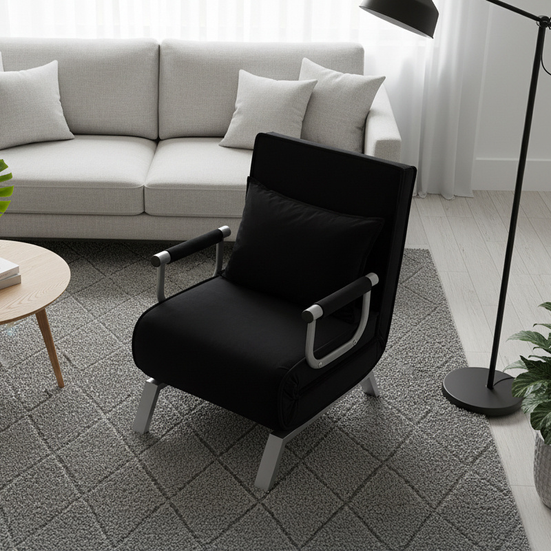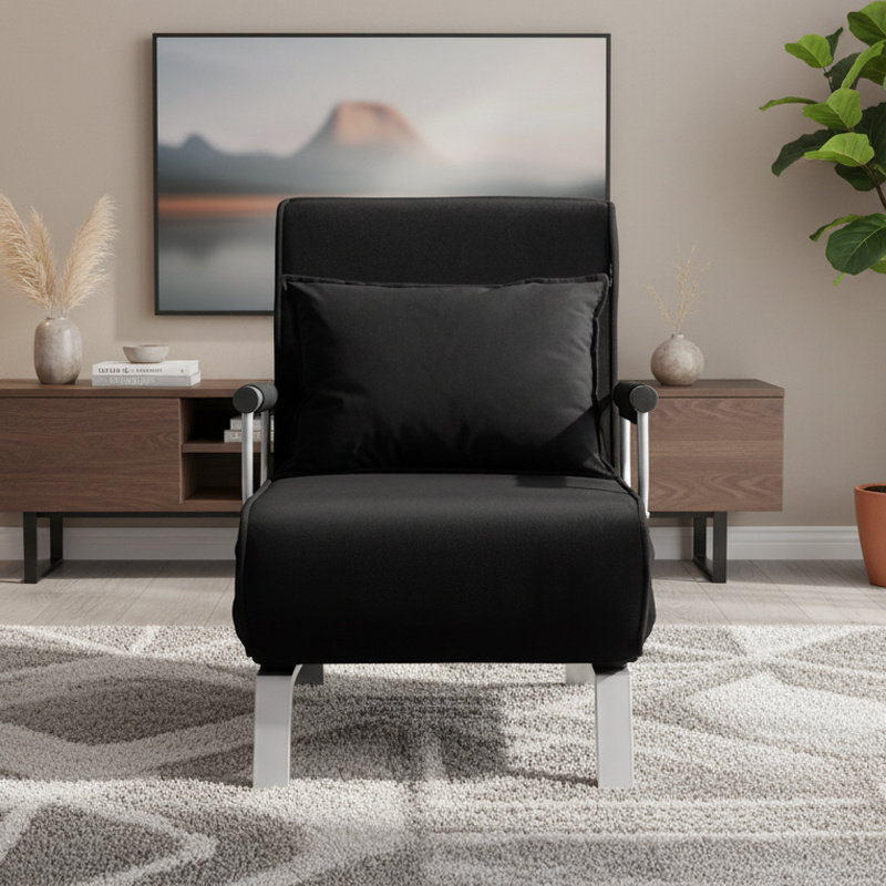 FOTEL KRZESŁO WELUROWE ROZKŁADANY TAPICEROWANY IBIZA CZARNY NOGI SREBRNOSZARE