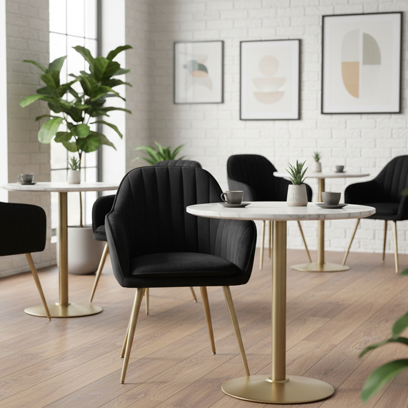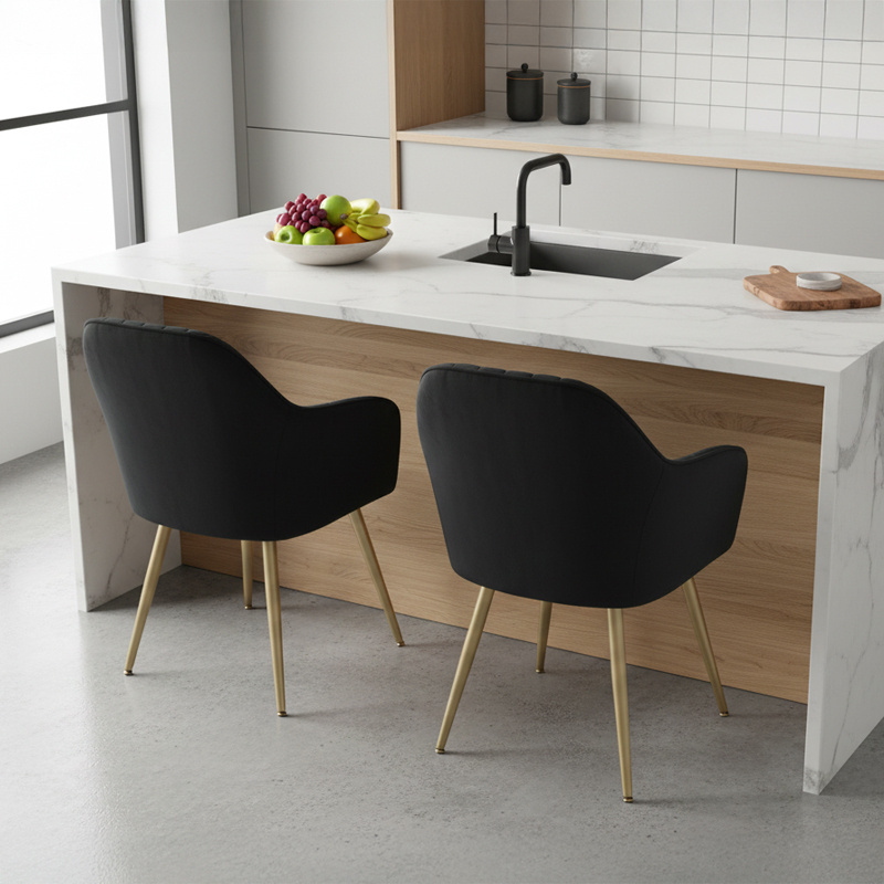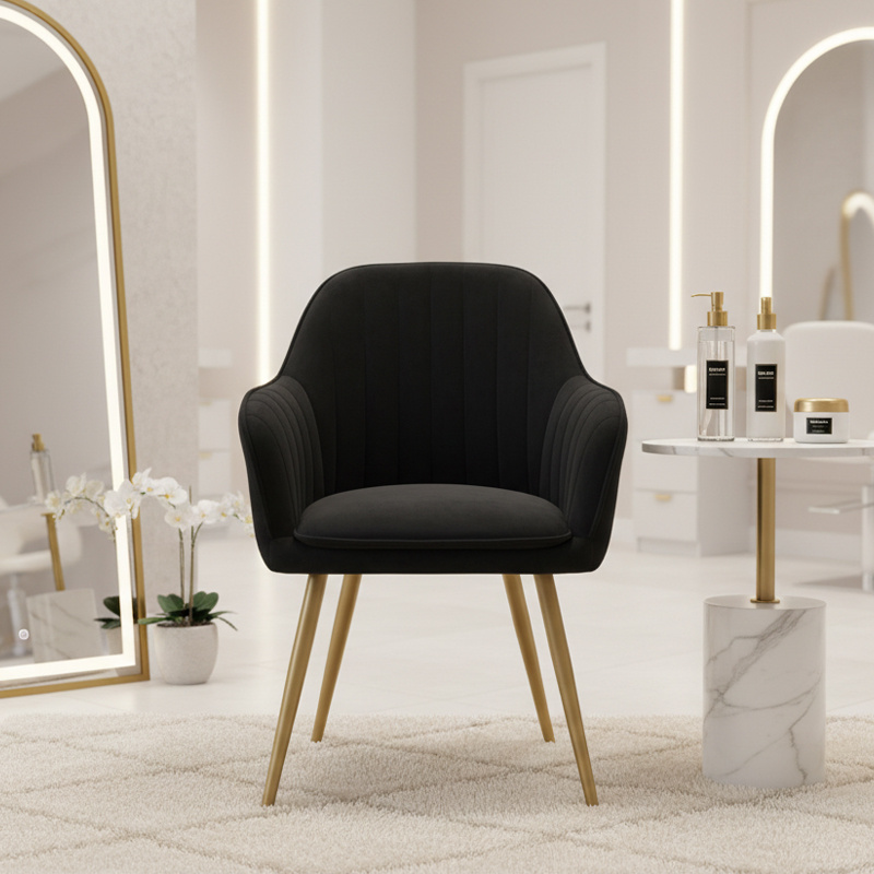 FOTEL KRZESŁO WELUROWE TAPICEROWANE BETO CZARNE NOGI ZŁOTE