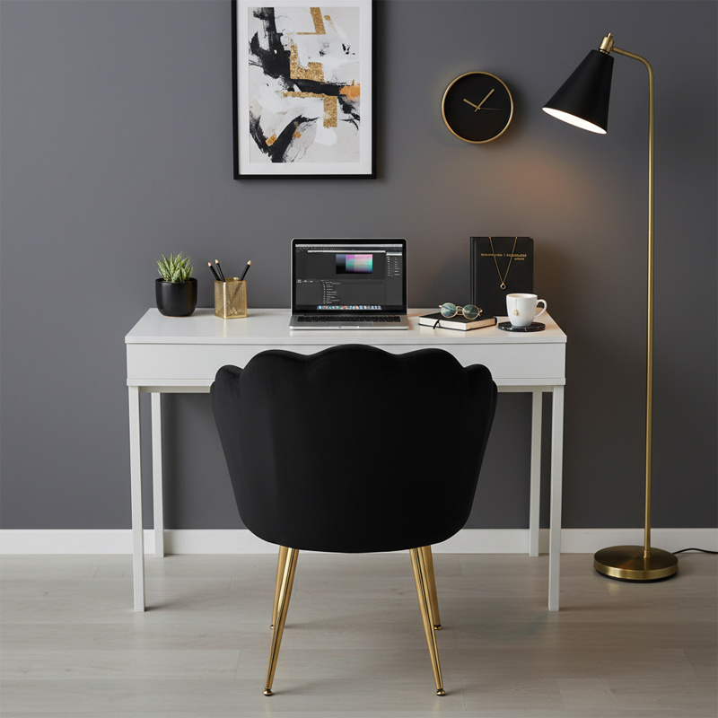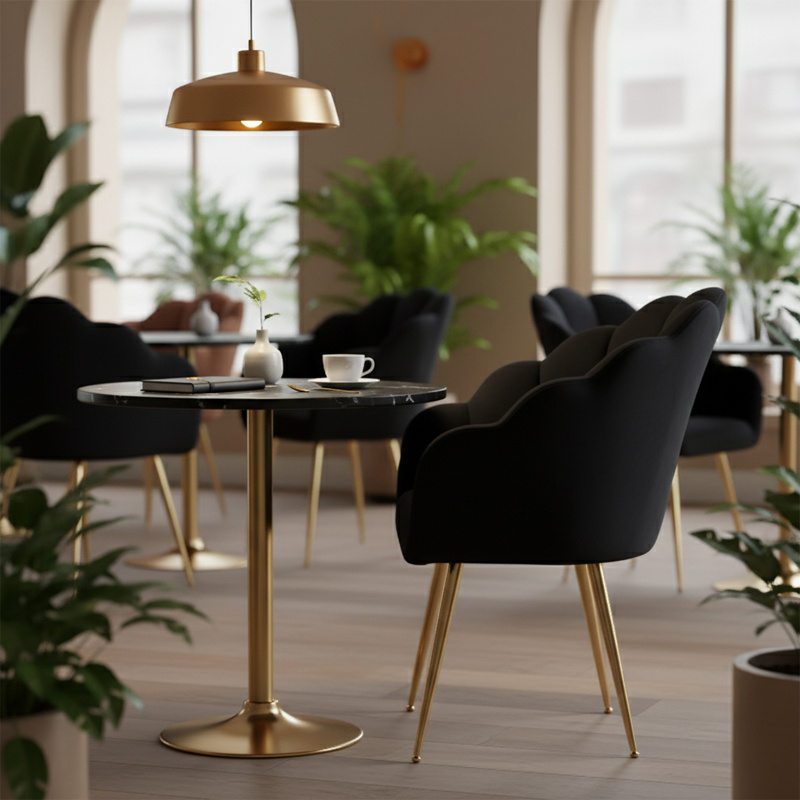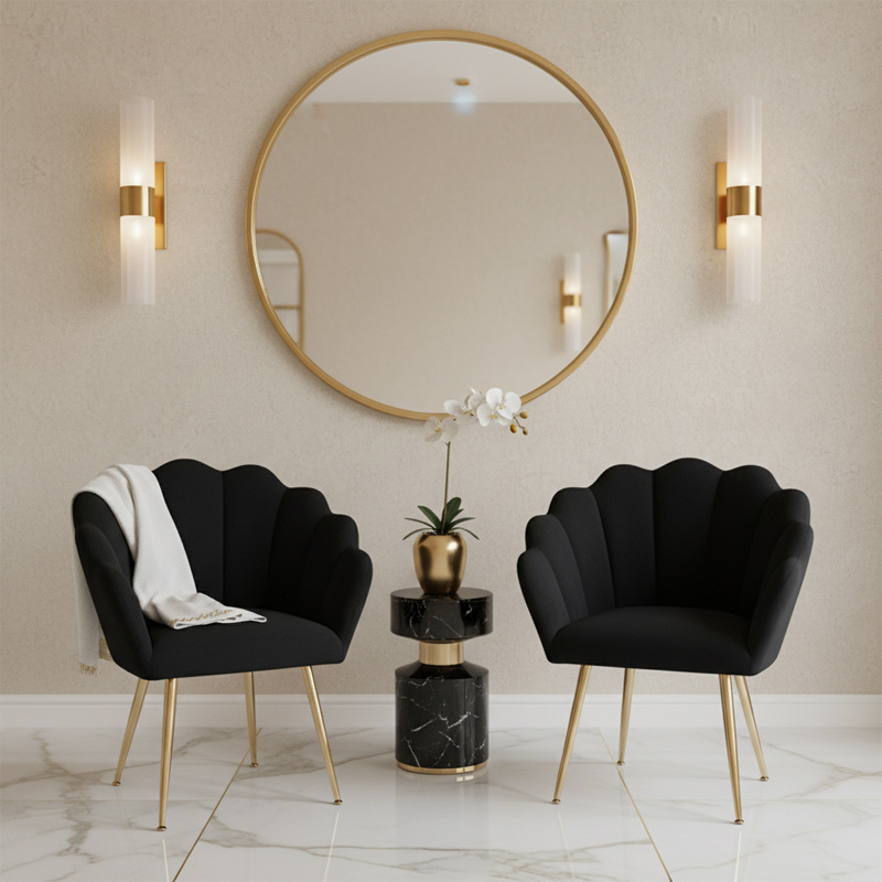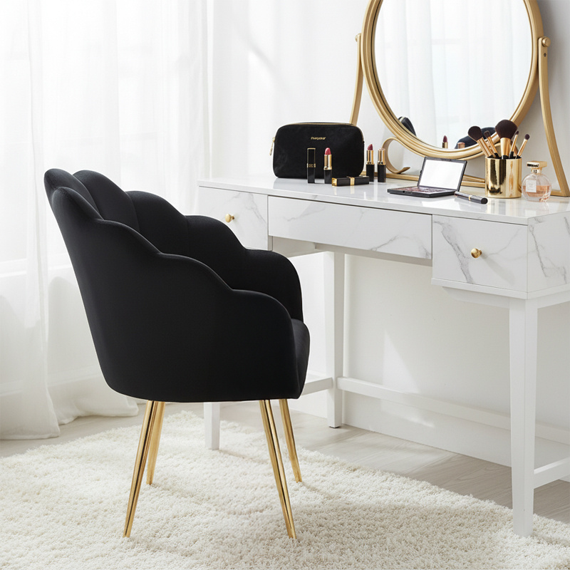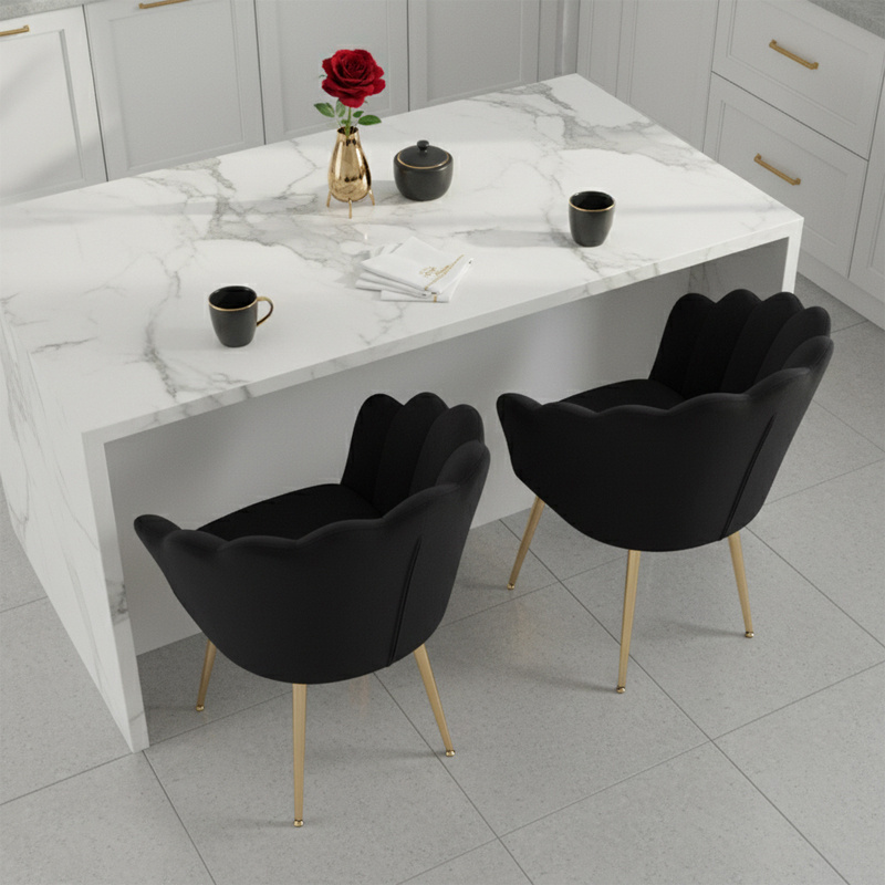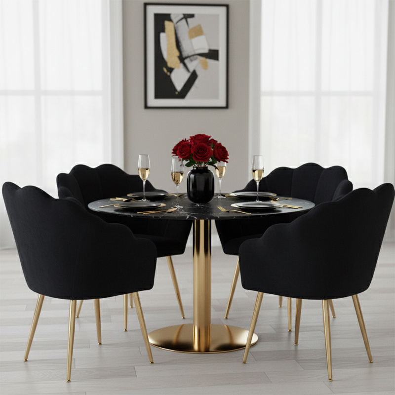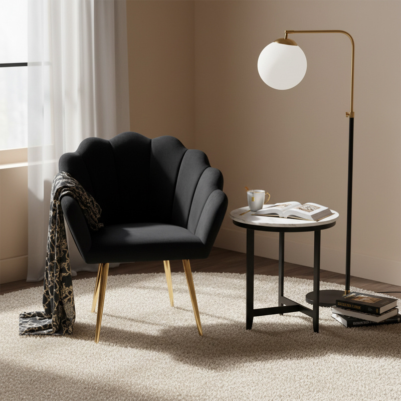 FOTEL KRZESŁO WELUROWE TAPICEROWANE TINA CZARNY NOGI ZŁOTE