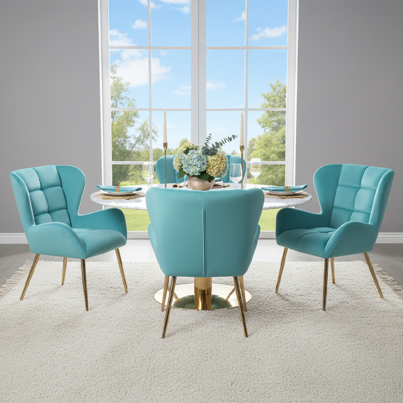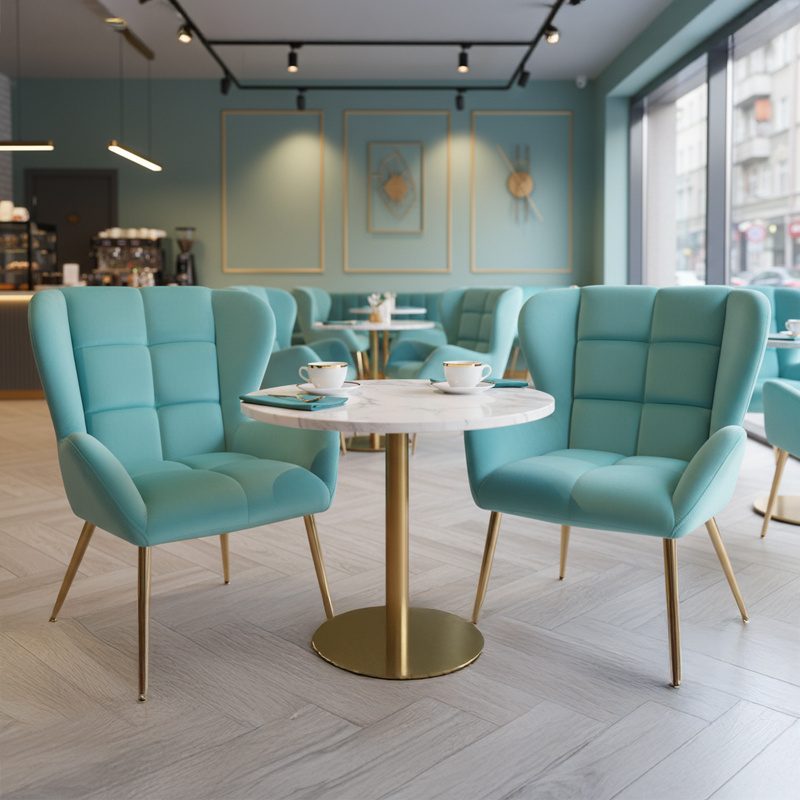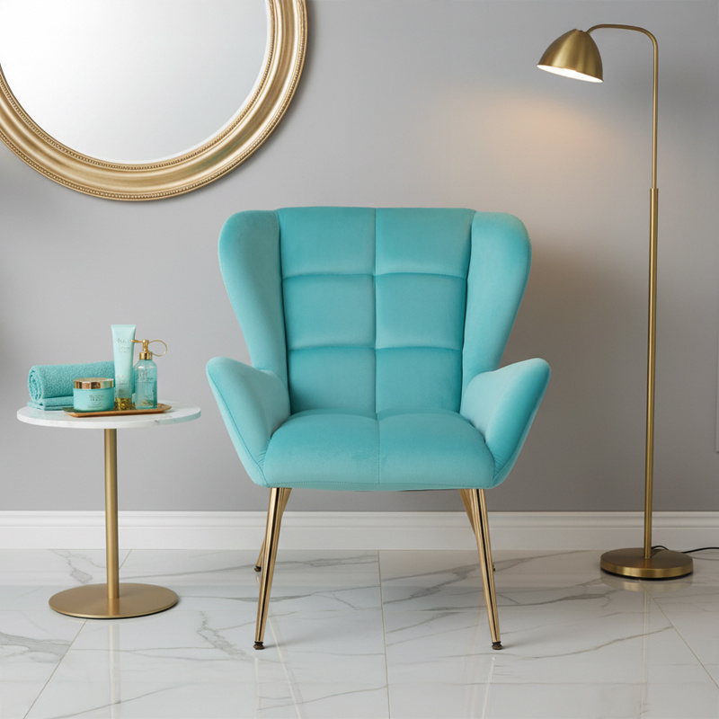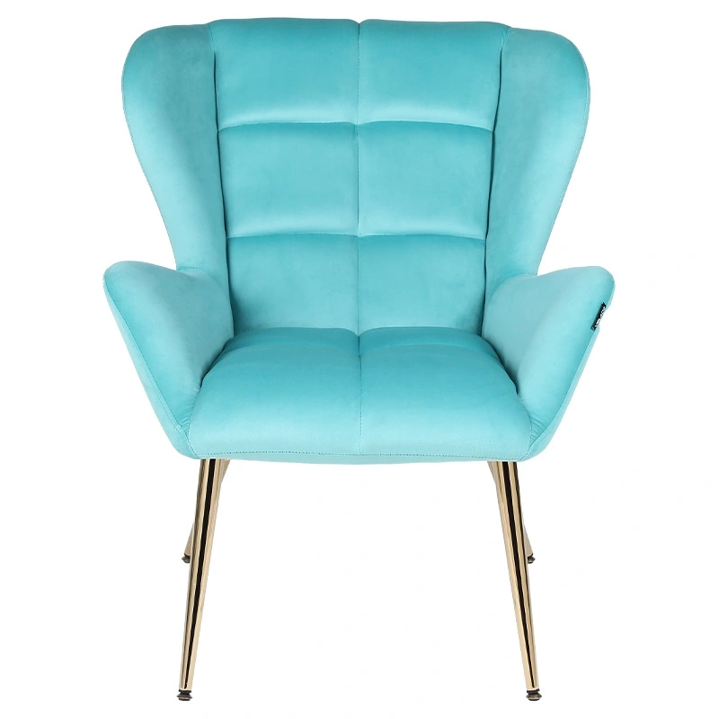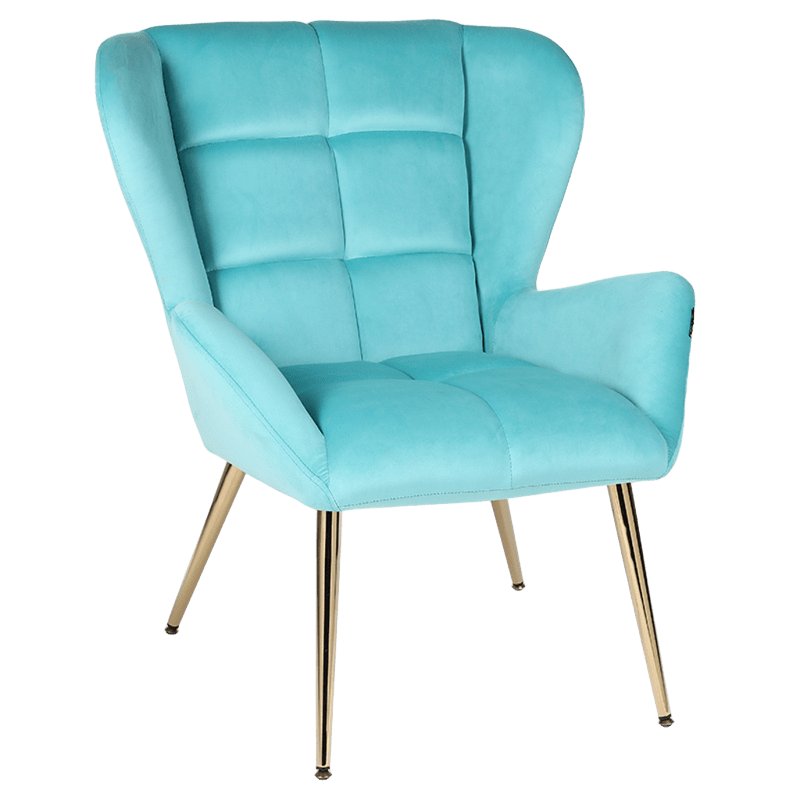 FOTEL KRZESŁO WELUROWE TAPICEROWANY CAPRI MIĘTOWY NOGI ZŁOTE