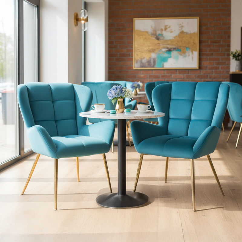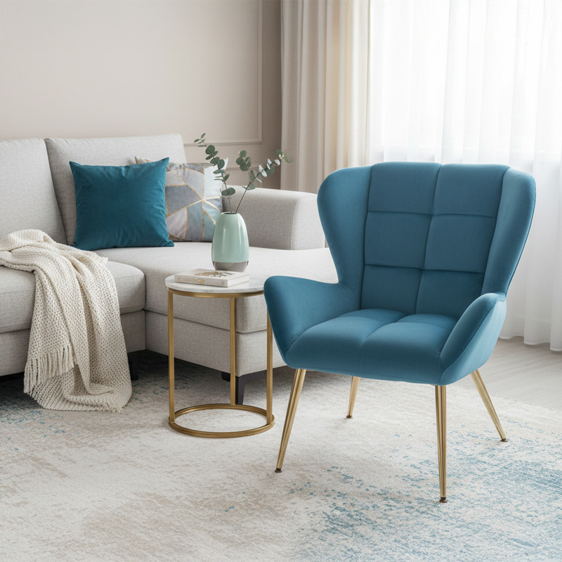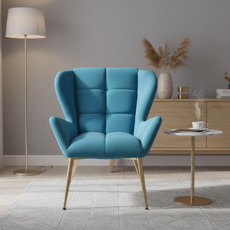 FOTEL KRZESŁO WELUROWE TAPICEROWANY CAPRI TURKUSOWY NOGI ZŁOTE