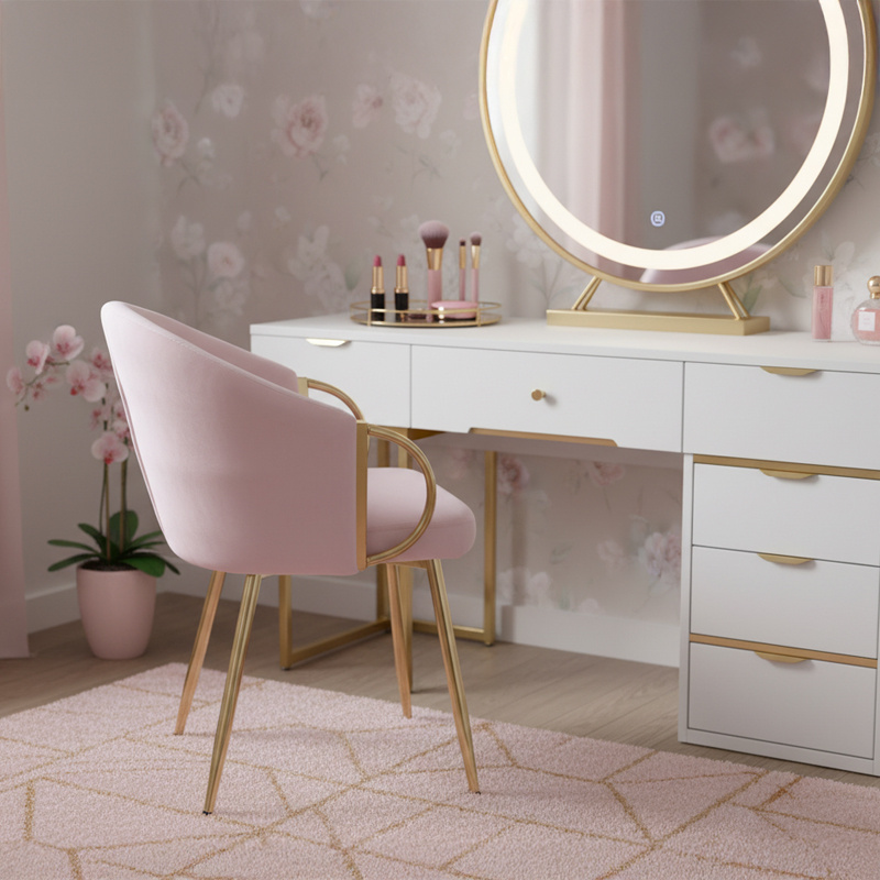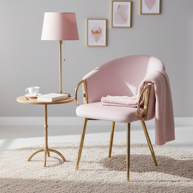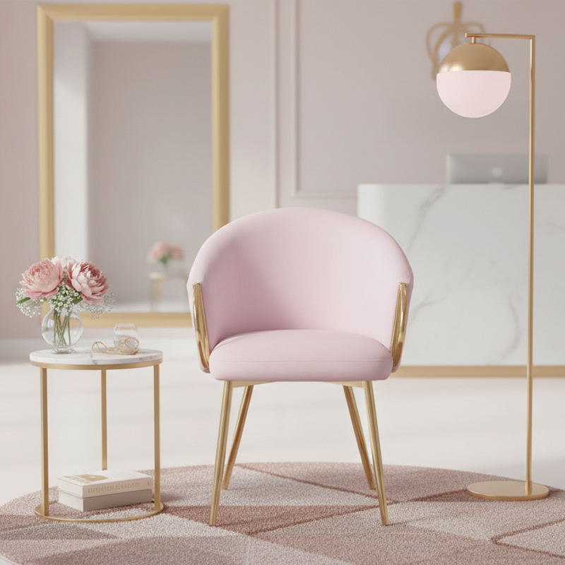 FOTEL KRZESŁO WELUROWE TAPICEROWANY METIS PUDROWY RÓŻ NOGI ZŁOTE