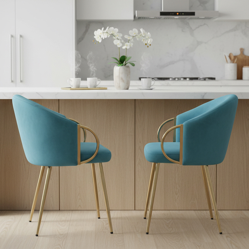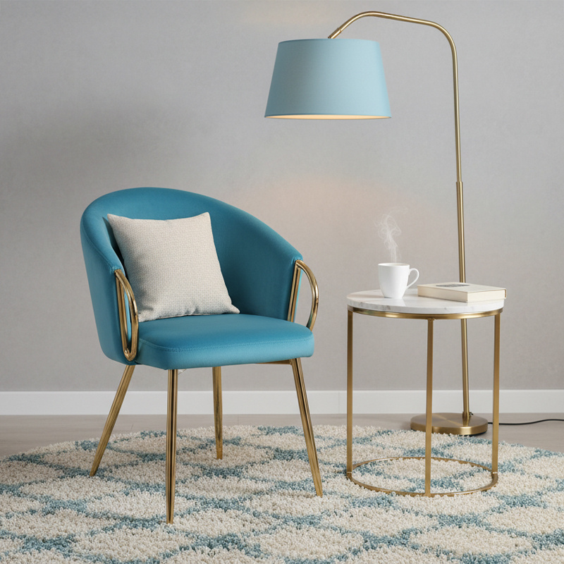 FOTEL KRZESŁO WELUROWE TAPICEROWANY METIS TURKUSOWY NOGI ZŁOTE