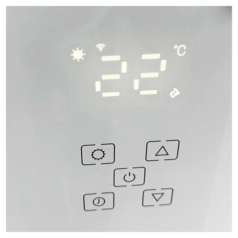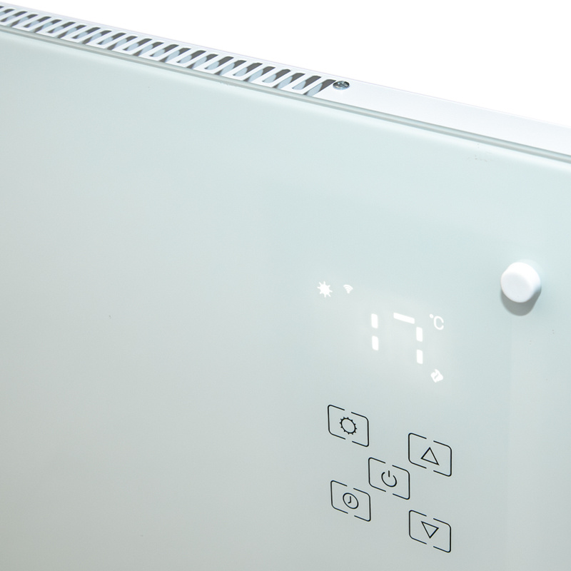 Grzejnik wyposażono w panel dotykowy, który, oprócz intuicyjnego sterowania, posiada również wbudowaną funkcję blokady dzieci, co zapewnia bezpieczeństwo użytkowania w obecności najmłodszych domowników.