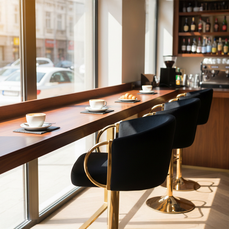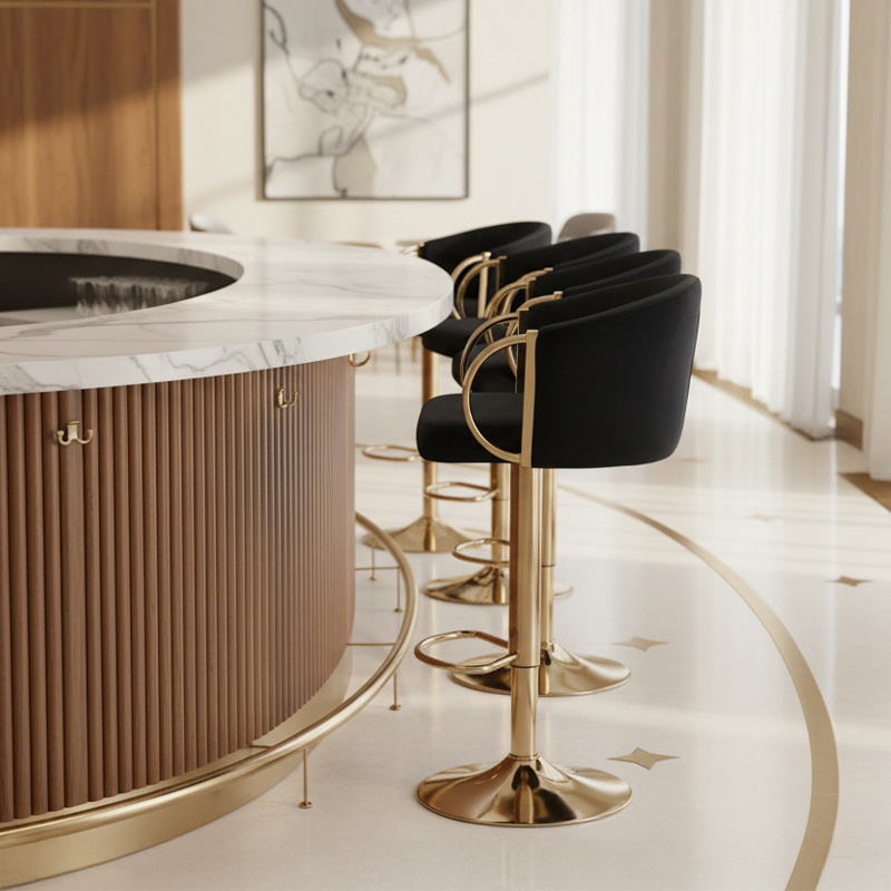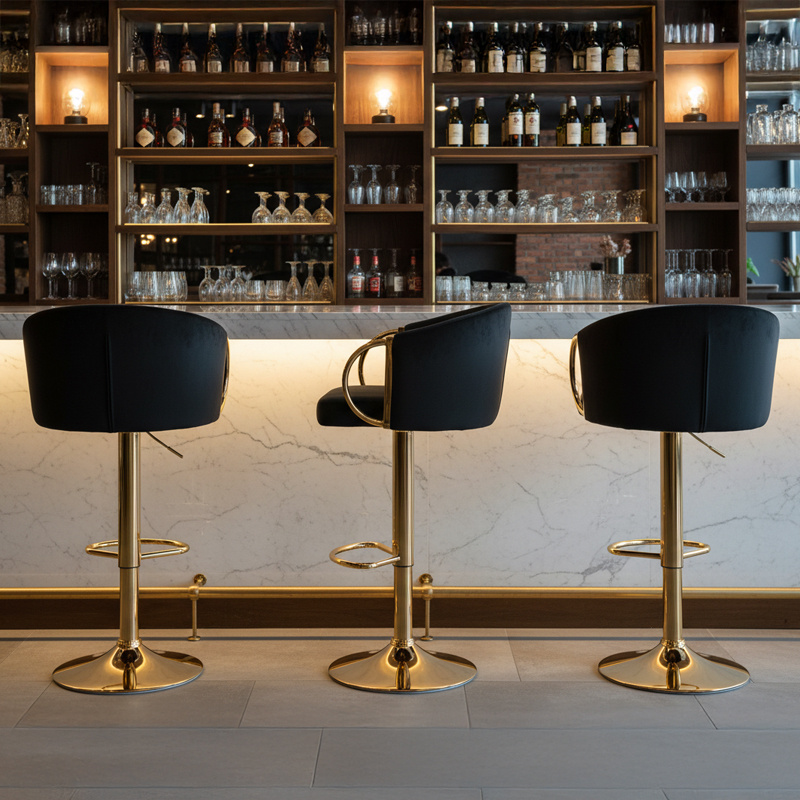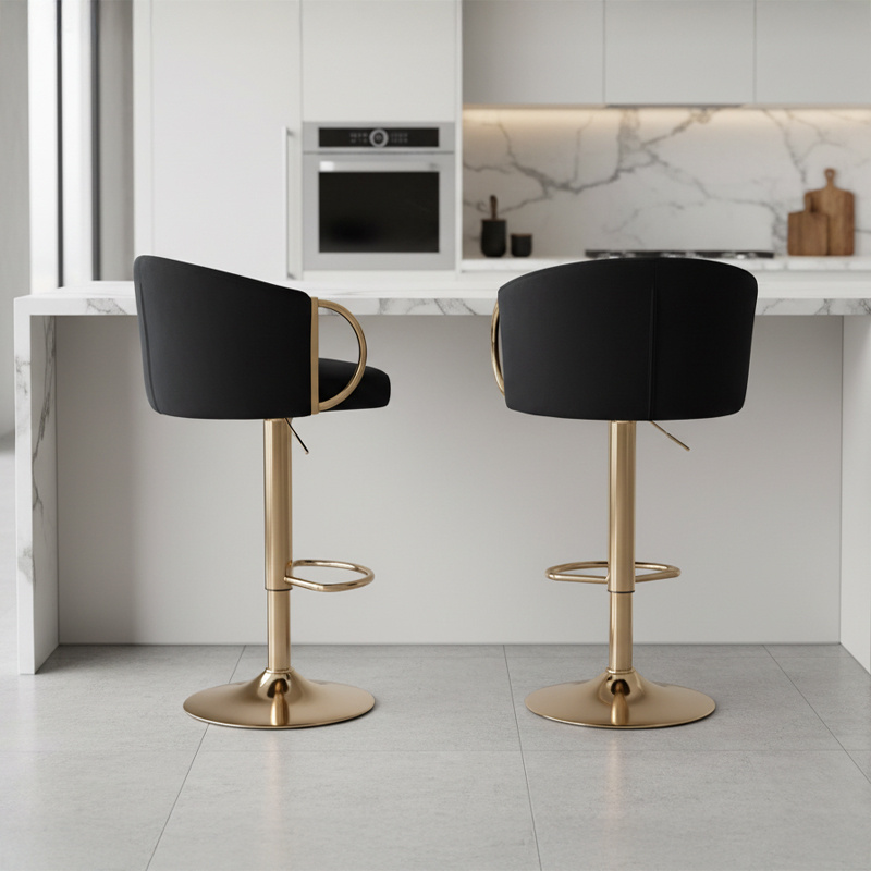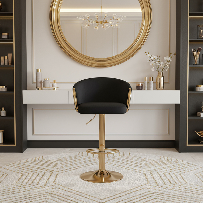 Hoker obrotowy BIANCA to stylowy i funkcjonalny mebel, który wyróżnia się wyjątkowym designem oraz wysoką jakością wykonania. Jego siedzisko, pokryte aksamitną tkaniną, zachwyca miękkością i dodaje mu niepowtarzalnego charakteru, a zastosowanie wysokiej jakości pianki gwarantuje maksymalny komfort siedzenia. Kontrastowe połączenie aksamitnej tapicerki ze złotą podstawą tworzy elegancką kompozycję w stylu vintage, która doskonale wpasuje się w różnorodne aranżacje wnętrz – od klasycznych po współczesne. Dodatkowo,stylowe uchwyty umieszczone w konstrukcji hokera podkreślają jego wyrafinowany charakter, dodając mu niebanalnego wyglądu. Hoker BIANCA to nie tylko wygodne miejsce do siedzenia, ale również efektowny element dekoracyjny, który wnosi do wnętrza nutę luksusu i elegancji.
