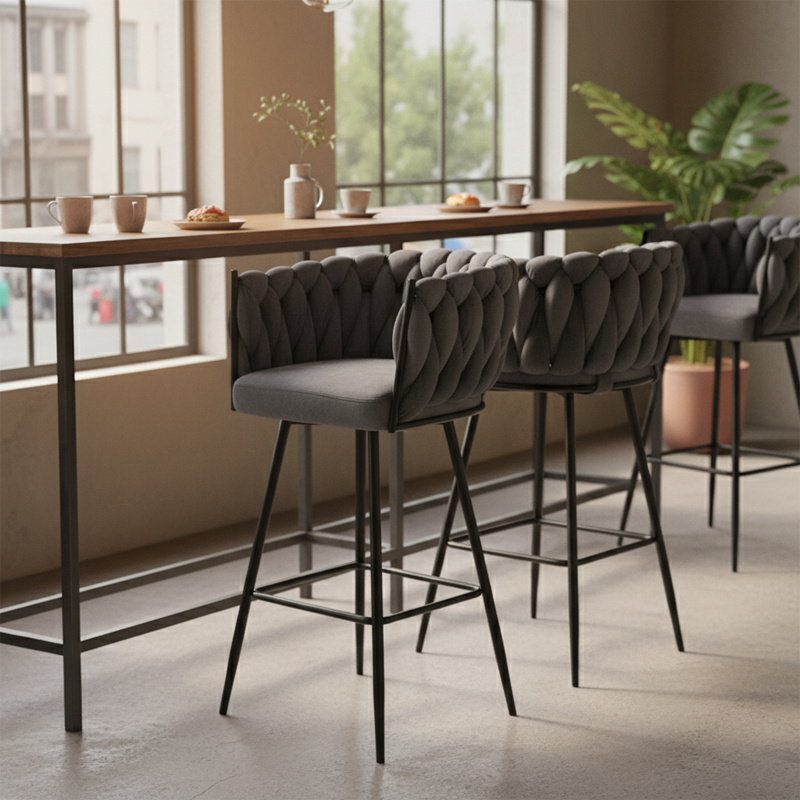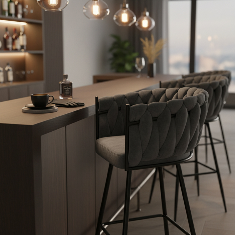 HOKER KRZESŁO BAROWE FERA CIEMNY SZARY WELUR NOGI CZARNE
