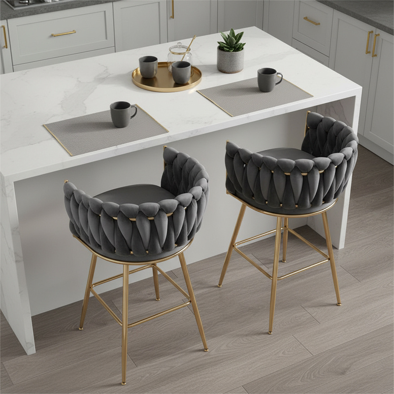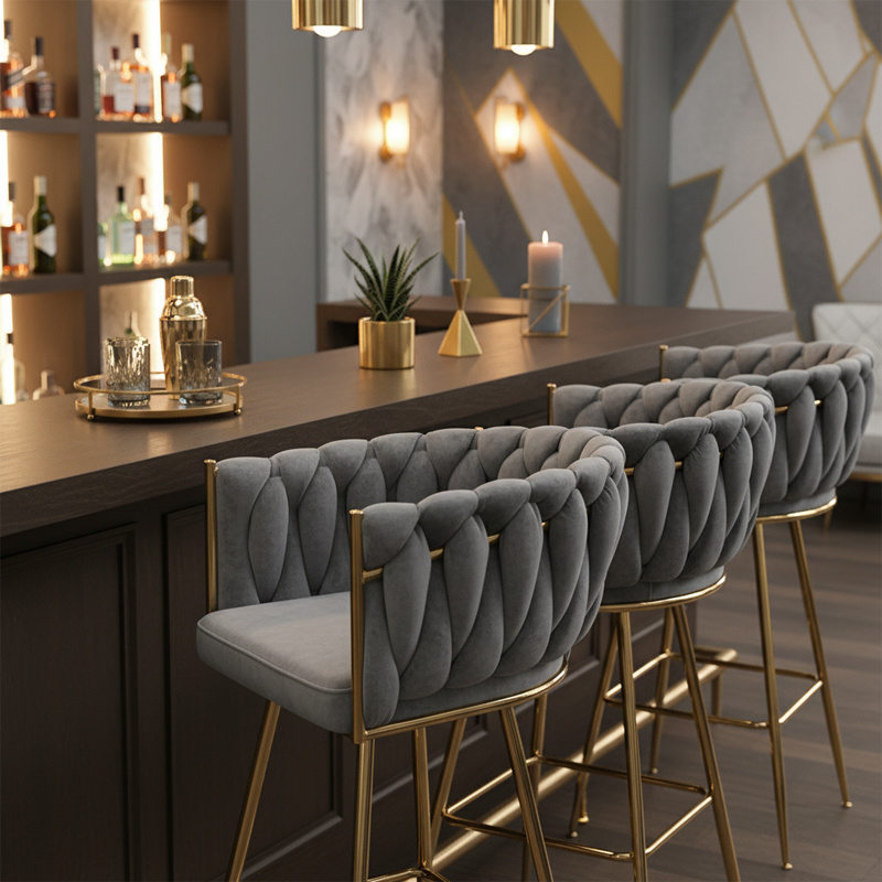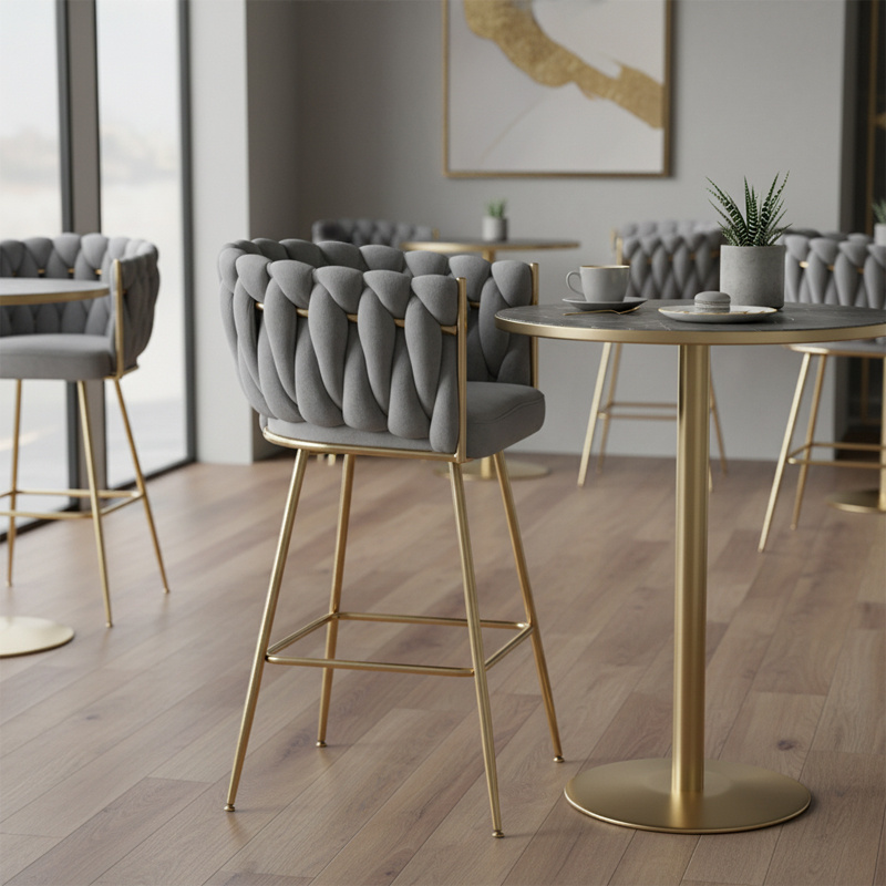 HOKER KRZESŁO BAROWE FERA CIEMNY SZARY WELUR NOGI ZŁOTE